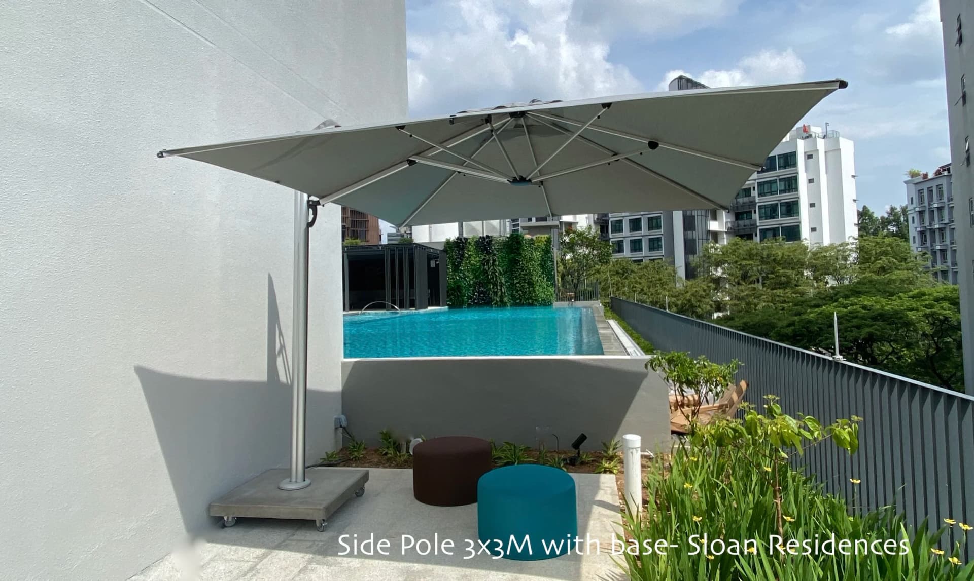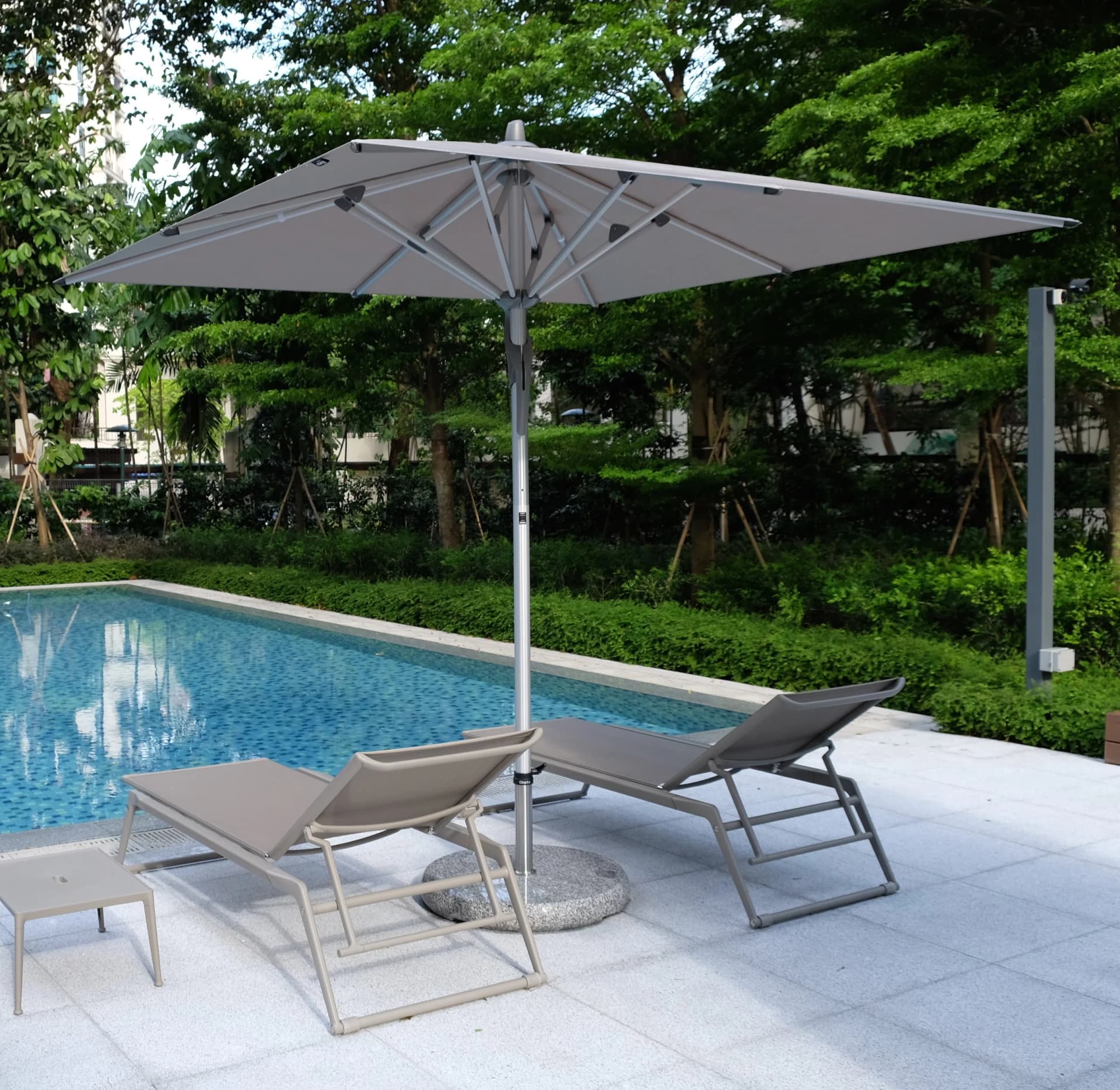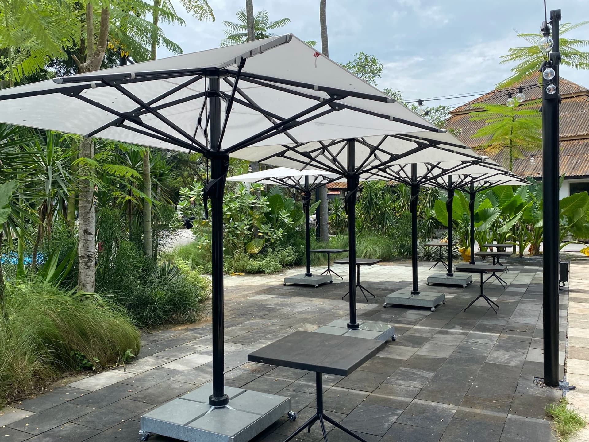 We carry a wide range of professional umbrellas, each series is wind tunnel tested according to usage. The maximum wind speed is about 110km/h with the largest size being 800cm or 800x600cm across All fabrics are highly UV and water resistance with 99% cut.